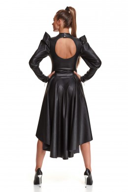 Basque type skirt, short at front, long in the back. Made of elastic eco-leather with pattern.
